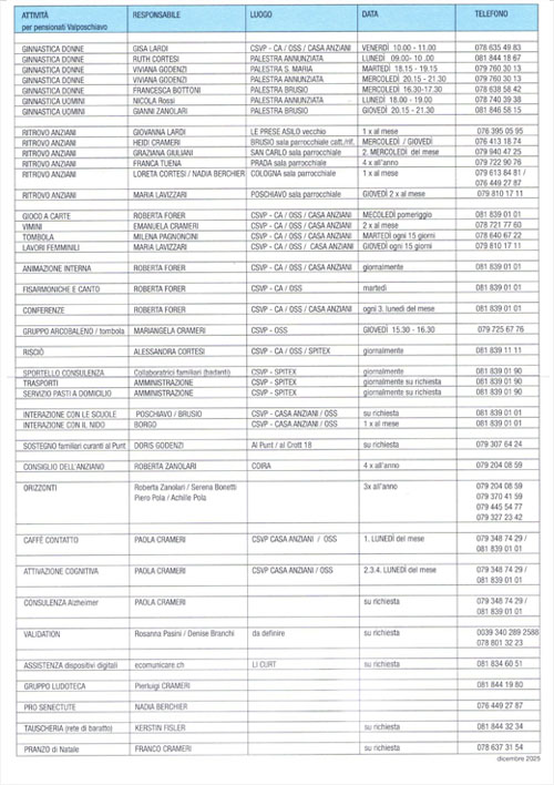 di attività a favore degli anziani collaborando con diverse realtà vallerane.